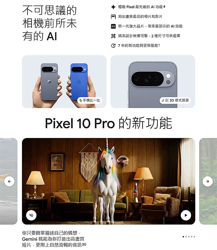 ◎ 支援 Gemini、魔術修圖、一起拍、再想像、拍照指導、車禍偵測、災害警示