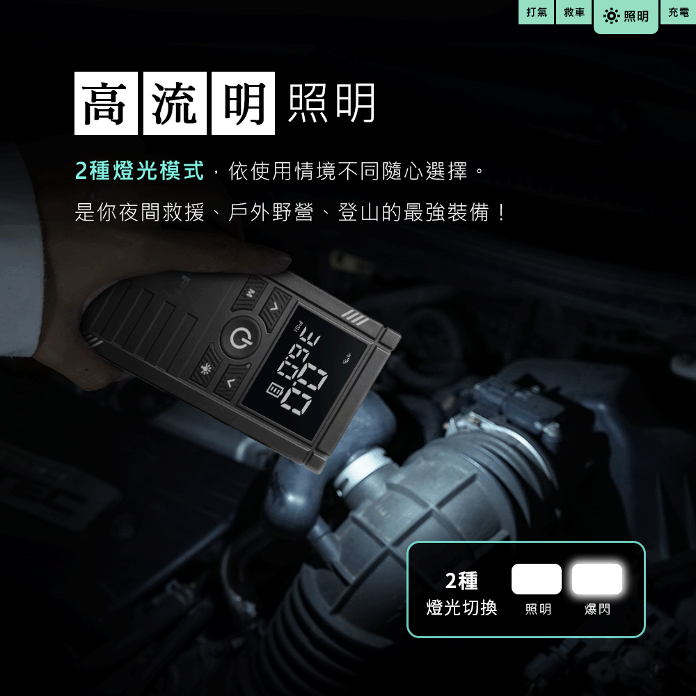 ●高倍率鋰聚合物電池,支援5000cc以下汽油車與3500cc以下柴油車沒電時緊急啟動