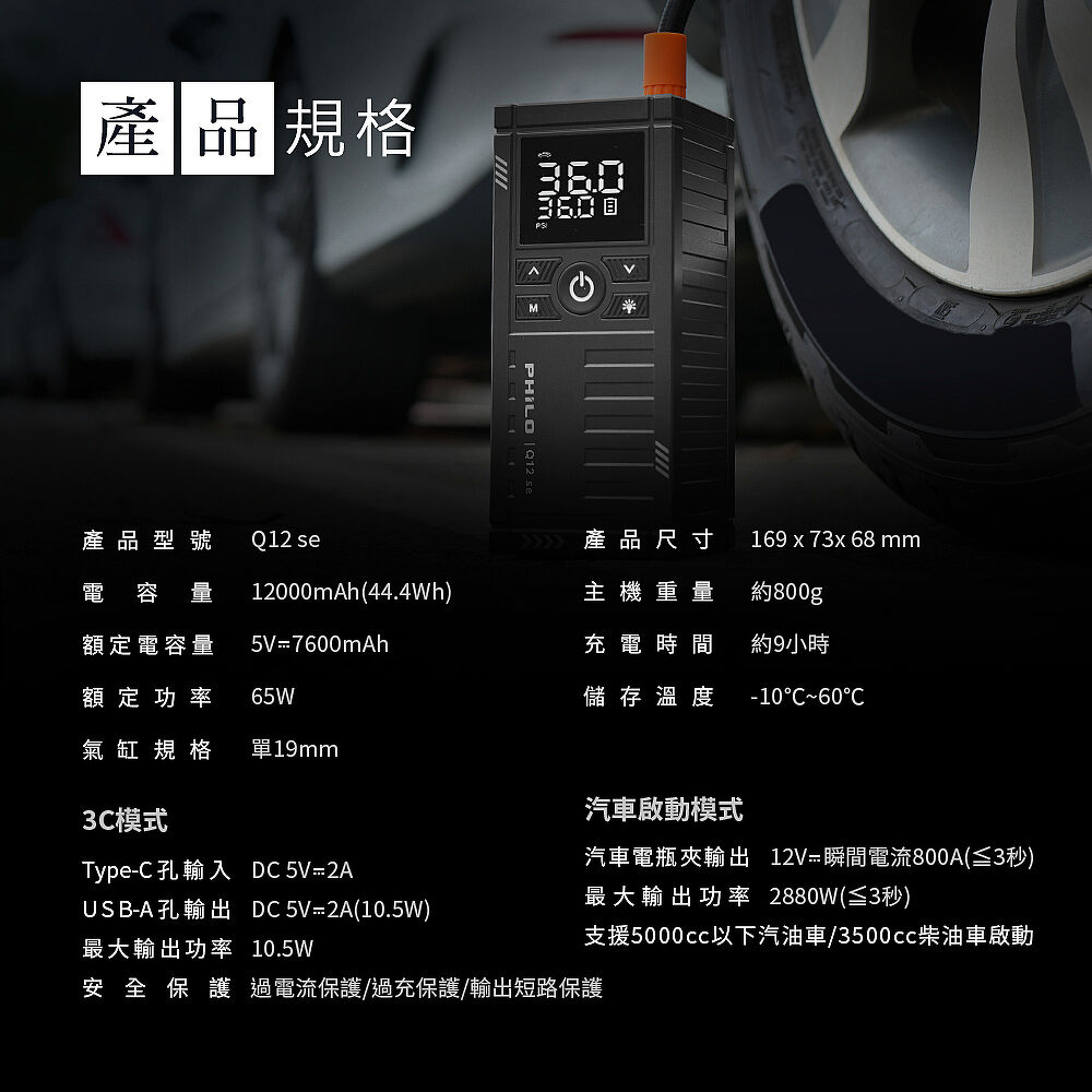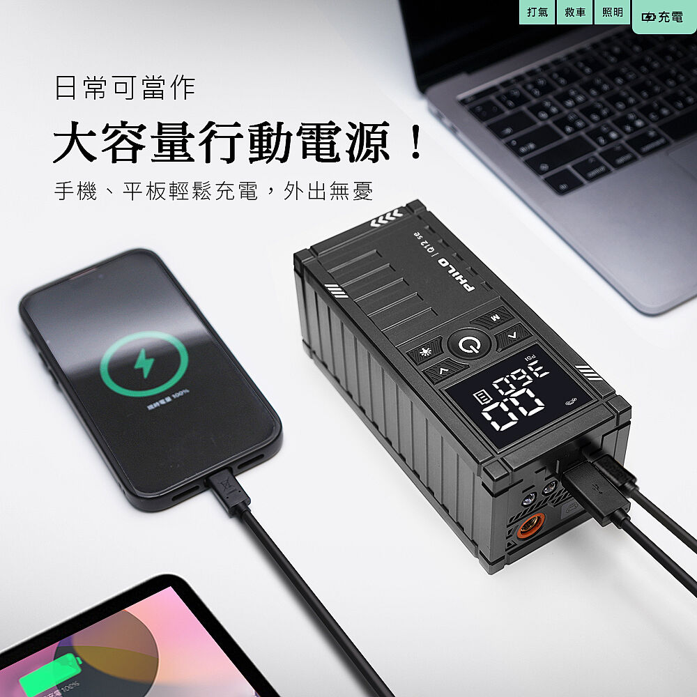 【Philo 飛樂】行車救援王Q12se 救車打氣多功能機 精選版