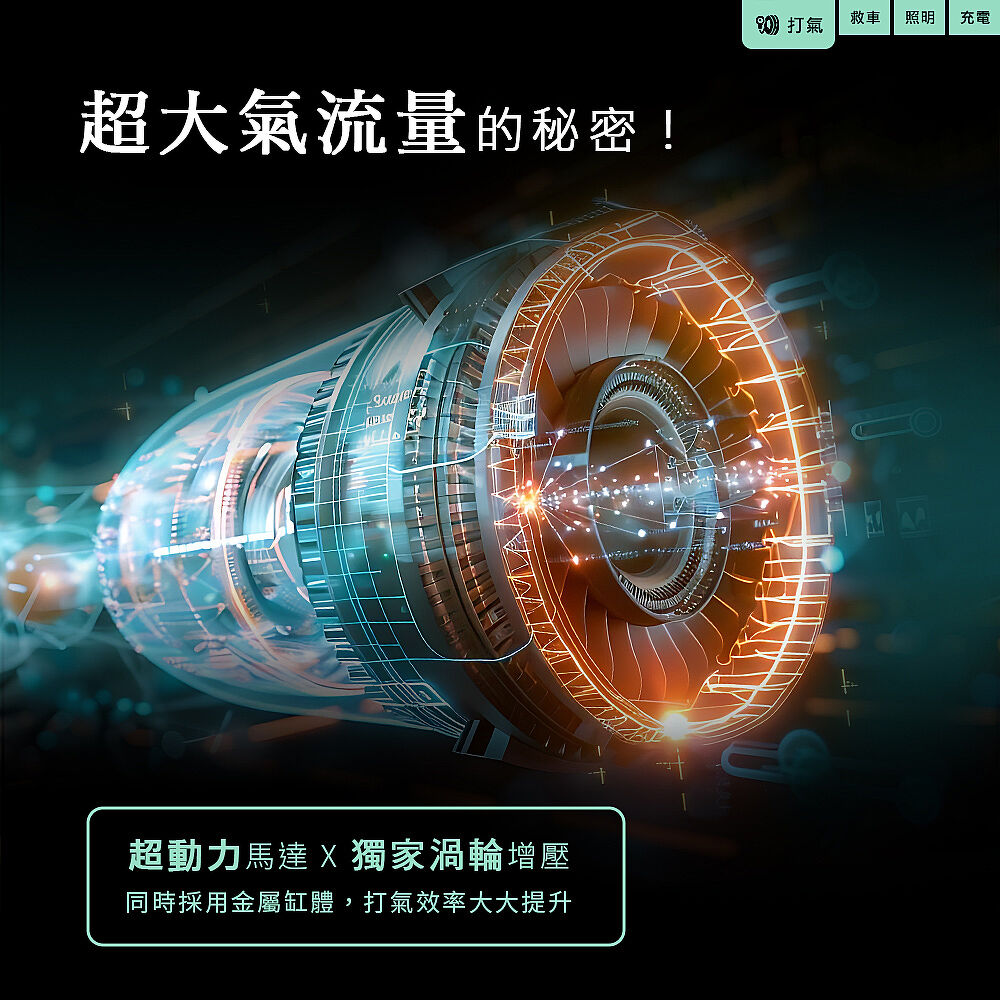 ●19mm超大缸體,一條15吋輪胎從0到36PSI只需5分鐘