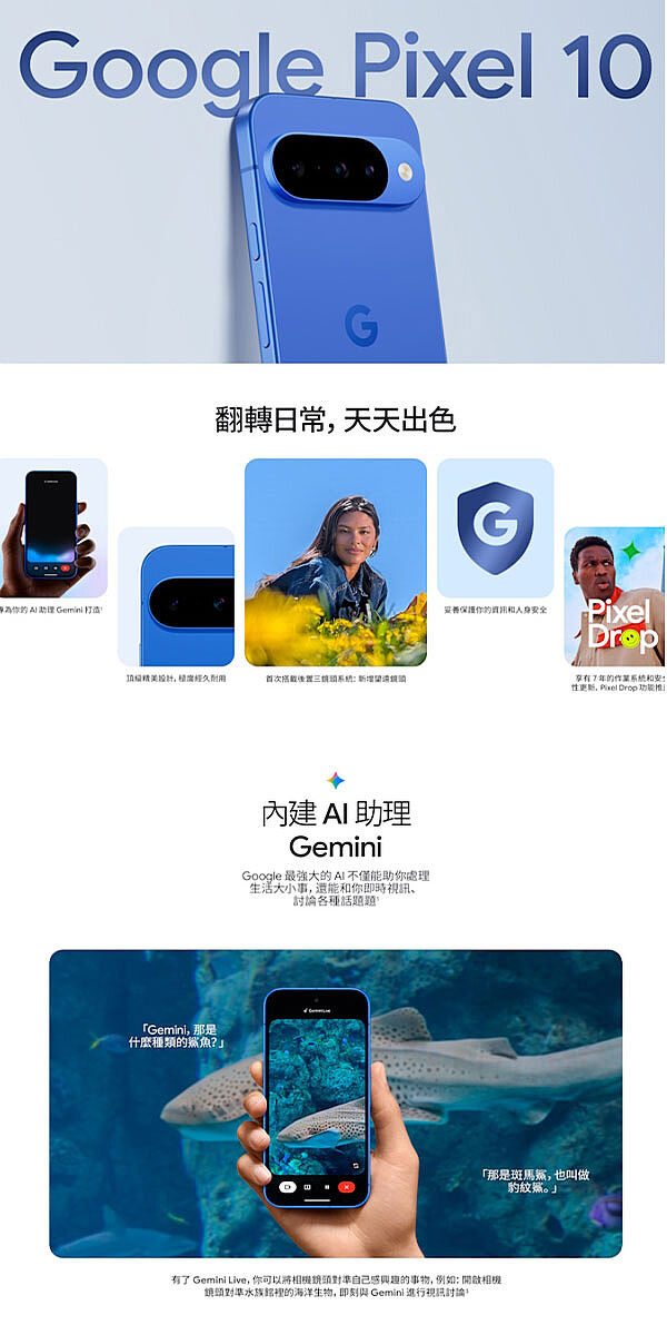 ◎支援Gemini、魔術修圖、一起拍、再想像、拍照指導、車禍偵測、災害警示