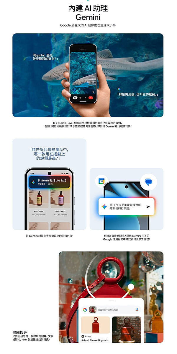 ◎支援Gemini、魔術修圖、一起拍、再想像、拍照指導、車禍偵測、災害警示