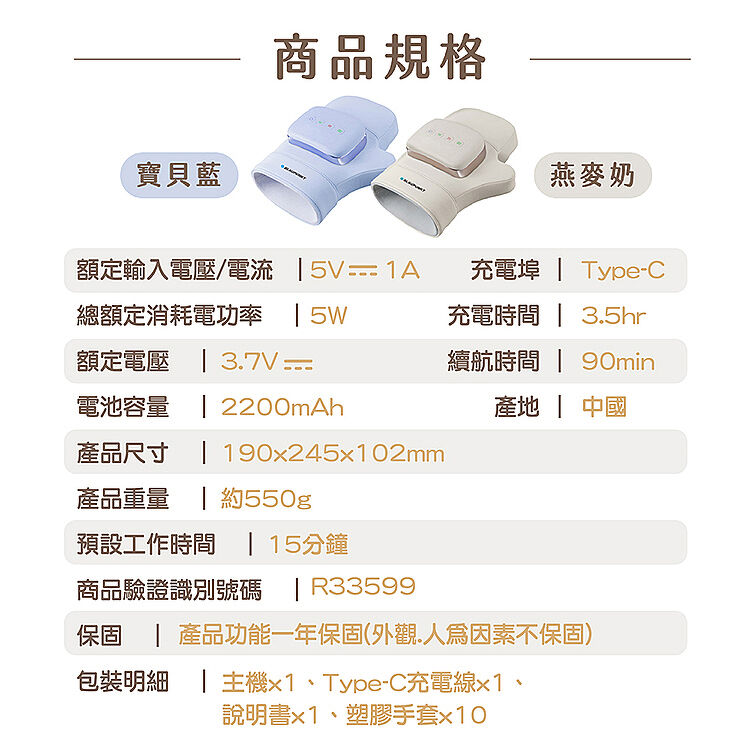 配件:主機x1,TYPE-C充電線x1,說明書x1,塑膠手套x10