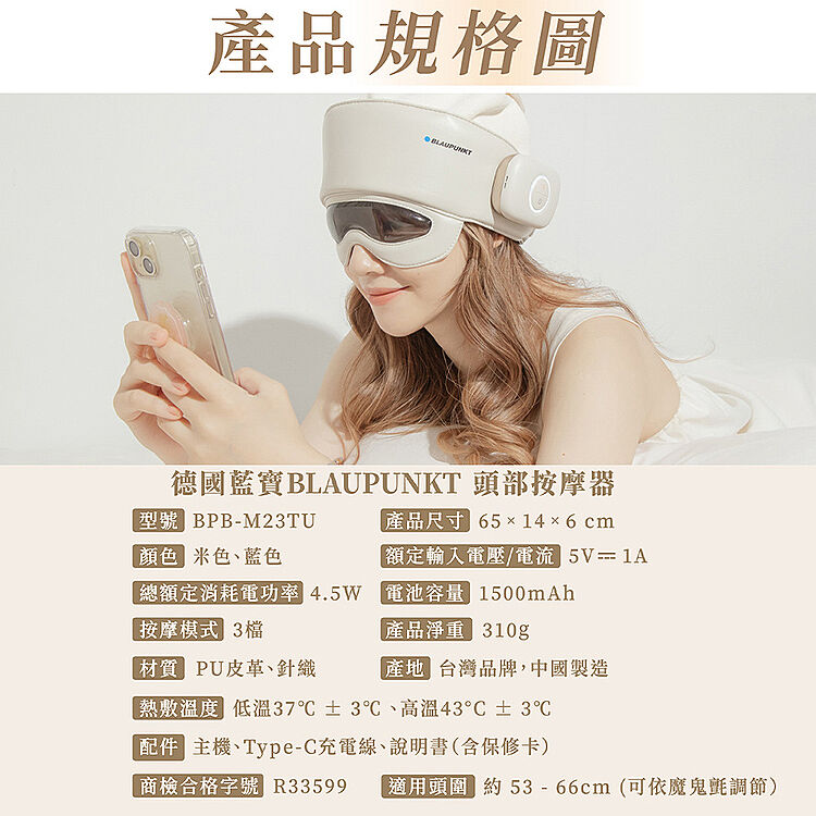 【BLAUPUNKT 德國藍寶】智慧頭部按摩器(BPB-M23TU)