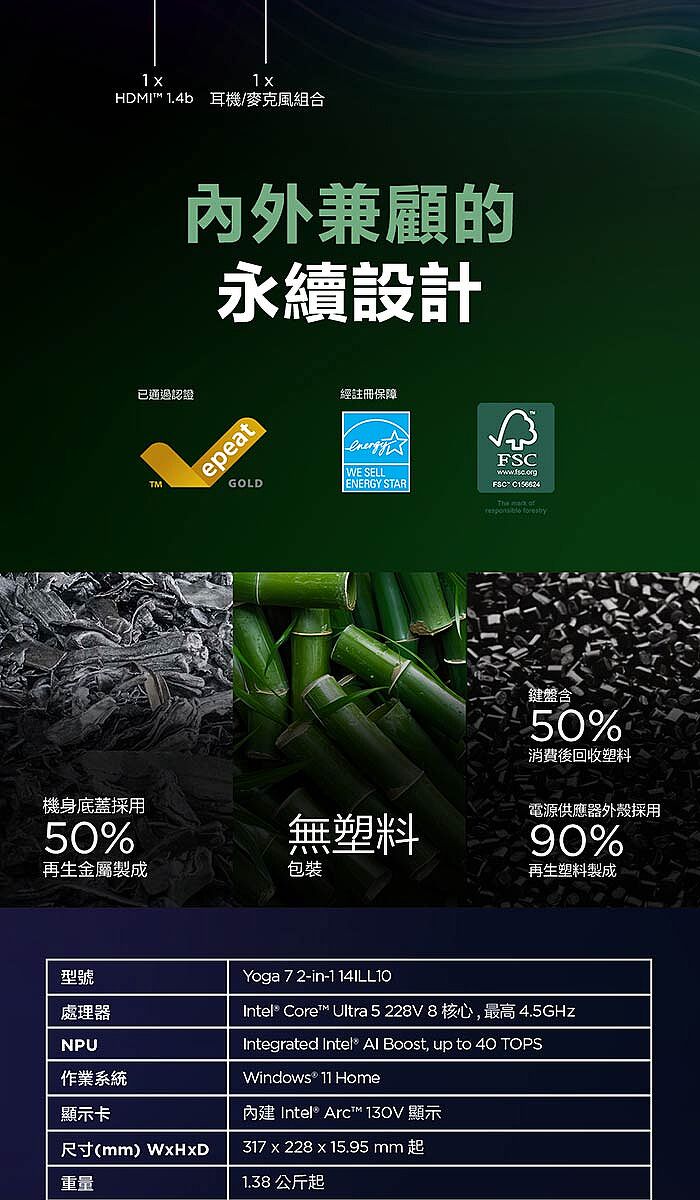 ●顯示介面:Integrated Intel® Arc™ Graphics 130V