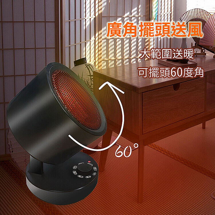 廣角擺頭送風設計,大範圍送暖,可擺頭60度角