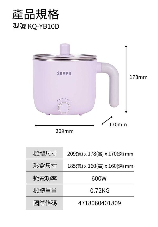 SAMPO 聲寶 1L 雙層防燙美食鍋 KQ-YB10D