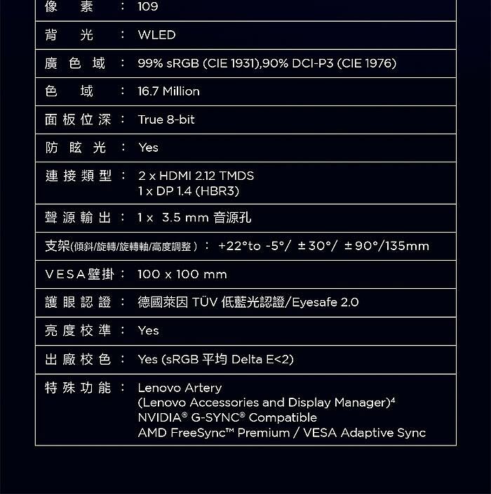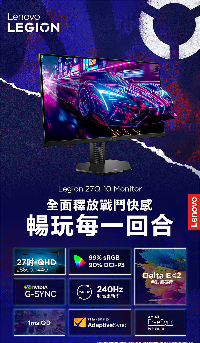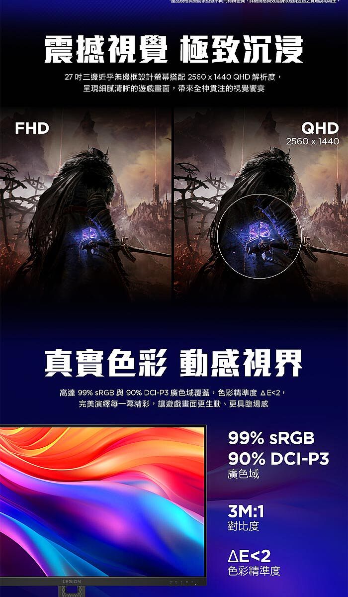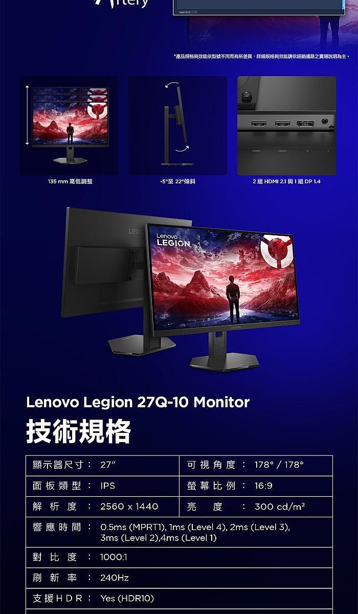 ●型號:Lenovo Legion 27Q-10 27"顯示器(68C6GAC4TW)