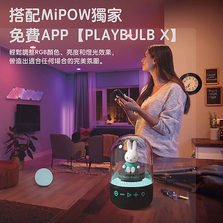商品名稱:MiPOW Miffy PLAYBULB LumiBoom RGB炫彩藍牙無線音箱/喇叭