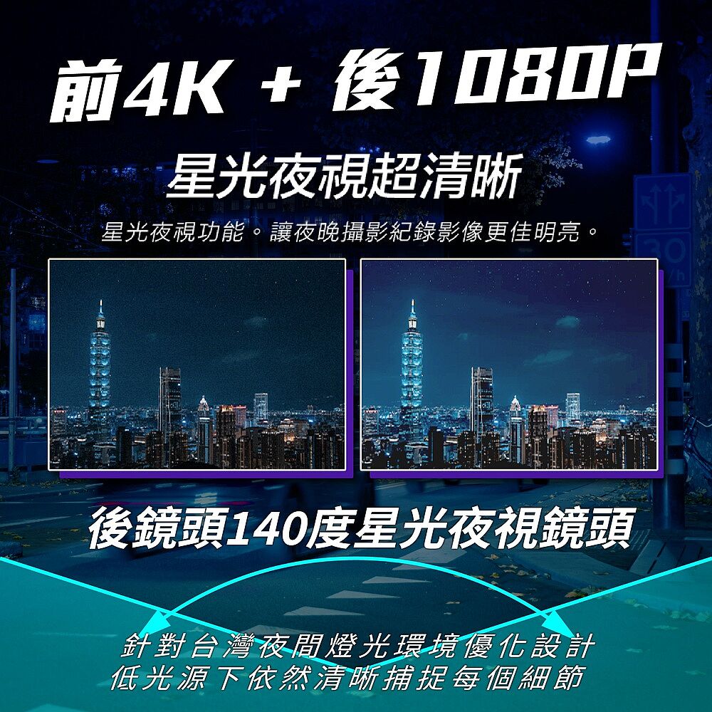 前4K高畫質+後1080P 雙鏡同步紀錄
