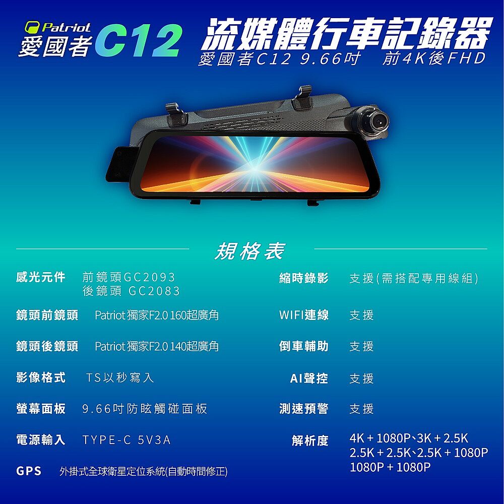 前後雙攝影可調 前後2K 前4K後1080P