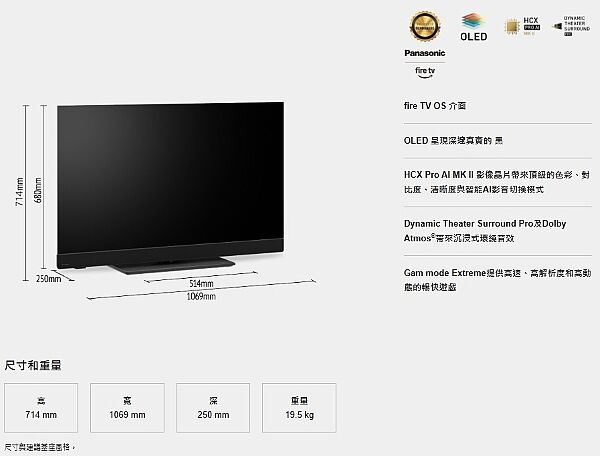 尺寸(寬x高x深mm):1,069 x 680 x 58 mm (不含脚座)
