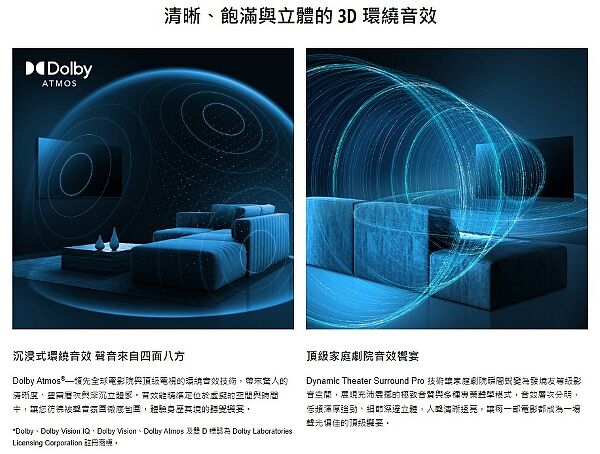 動態劇院環繞音效Surround Pro - 劇院陣列環繞揚聲器搭配強化重低音響,將影音體驗提升到全新境界