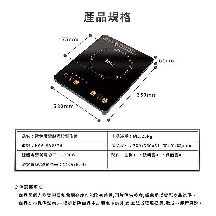 商品名稱:歌林微電腦觸控電陶爐KCS-SD2374