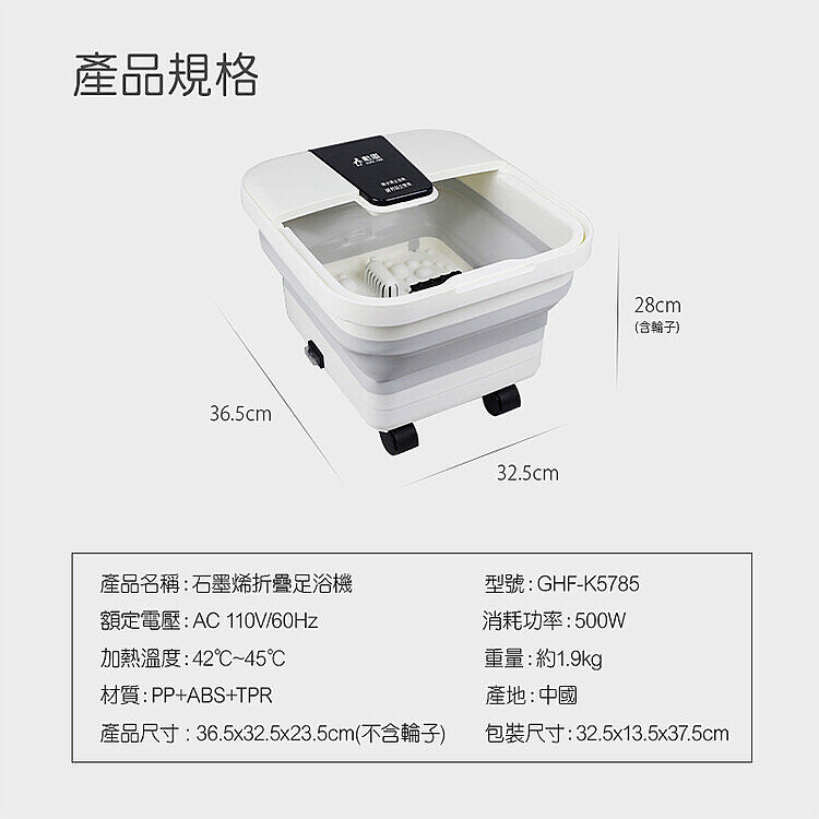 【SUPA FINE 勳風】石墨烯氣泡按摩折疊足浴機/泡腳機(GHF-K5785)