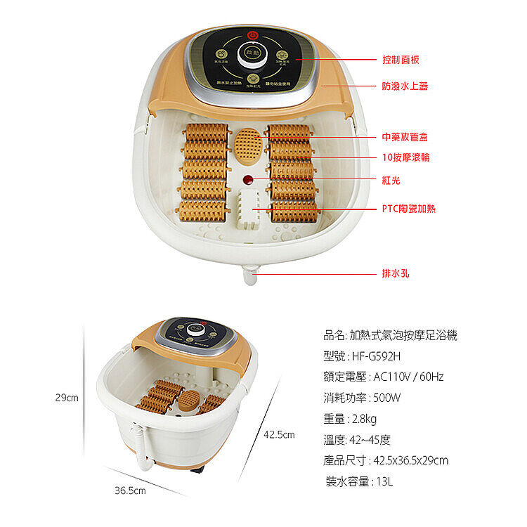 【SUPA FINE 勳風】加熱式SPA氣泡按摩足浴機/泡腳機(HF-G592H)