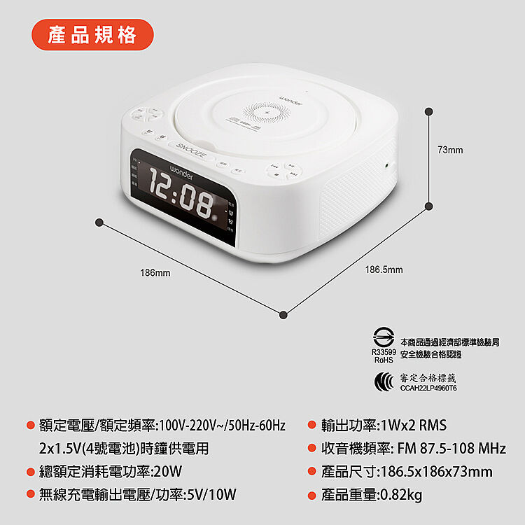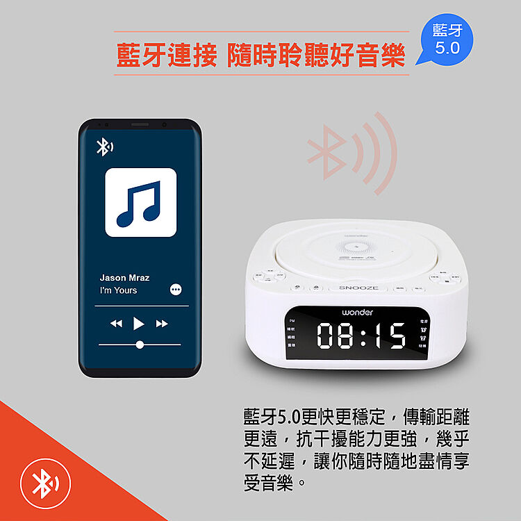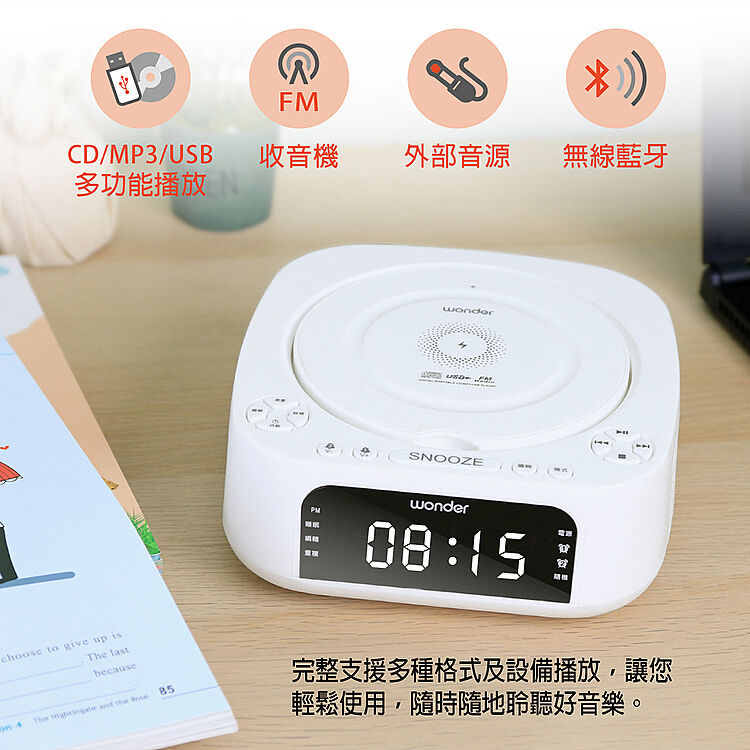 【WONDER 旺德】藍牙10W無線充CD/MP3/USB立體聲音響(WS-B035U)