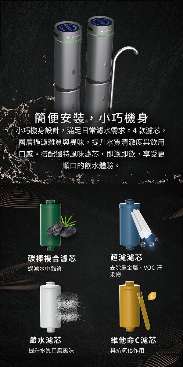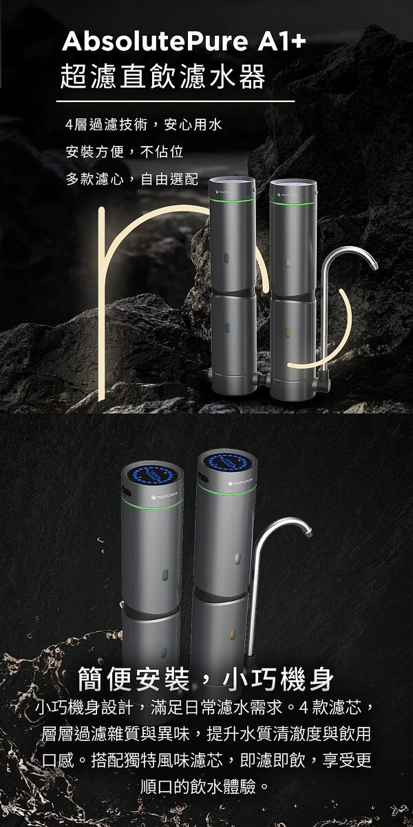 A1+ 超濾直飲濾水器-全配組-(主機2入,超濾/碳棒/維他命C/鹼水濾芯各1入)