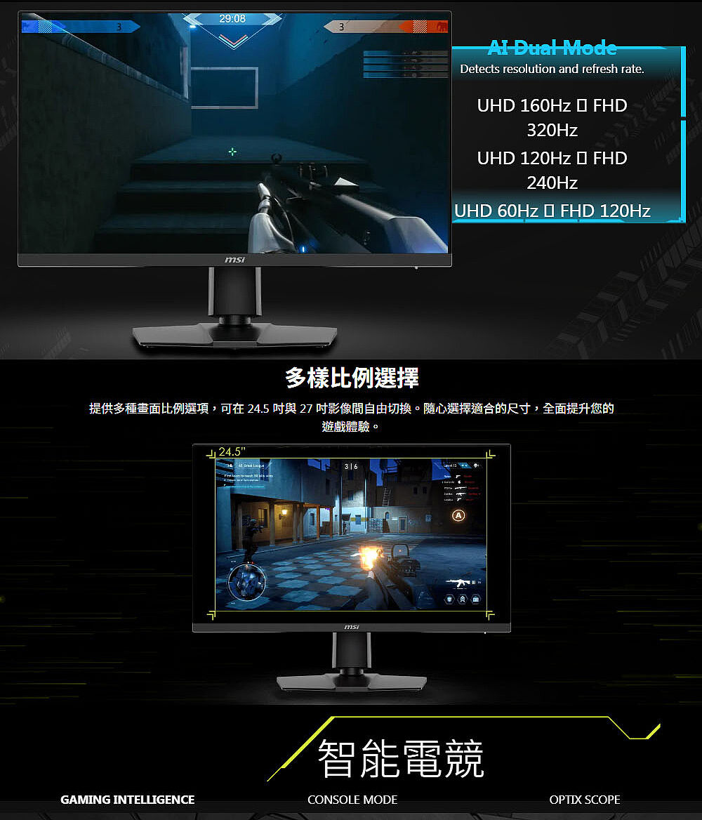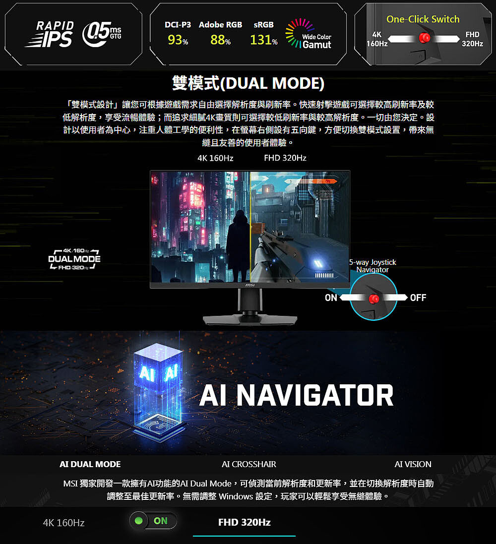 雙模式:依遊戲需求自由選擇解析度與刷新率