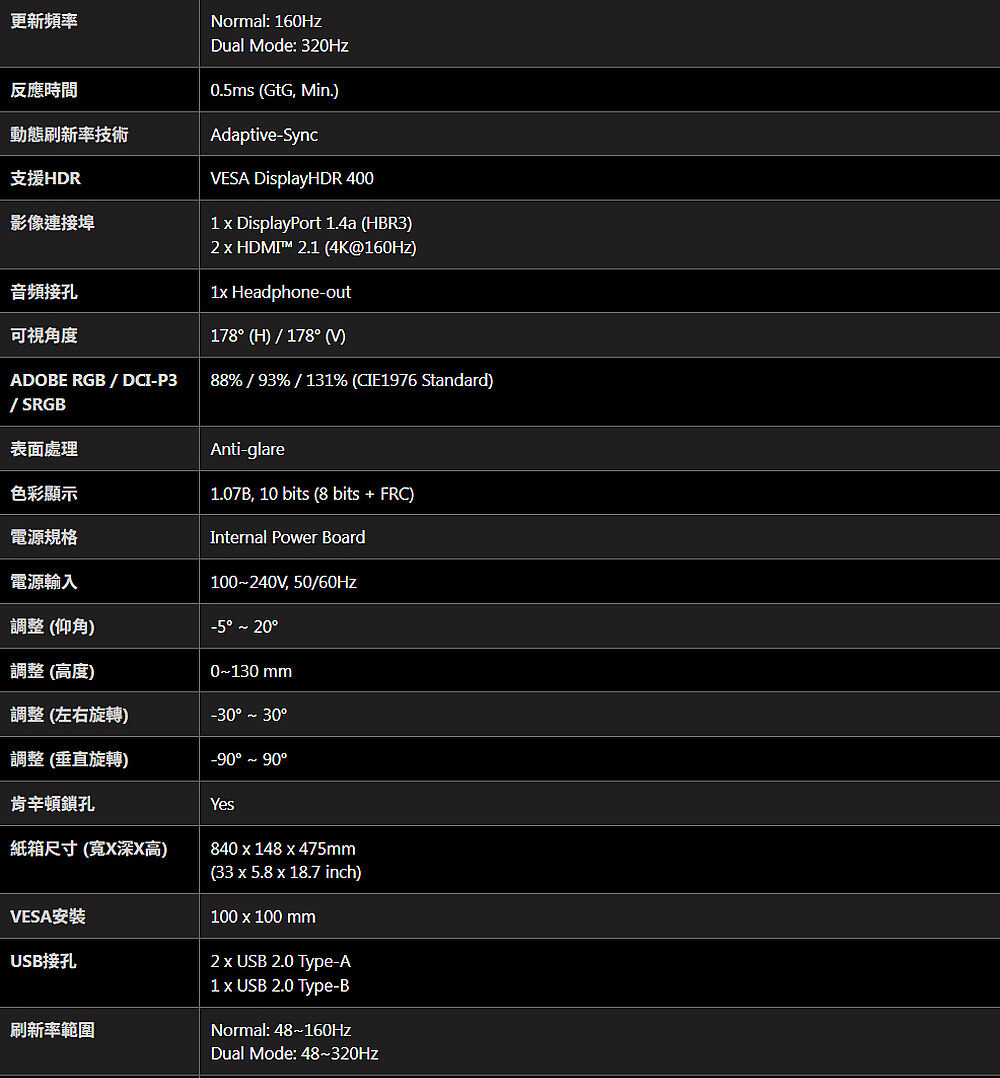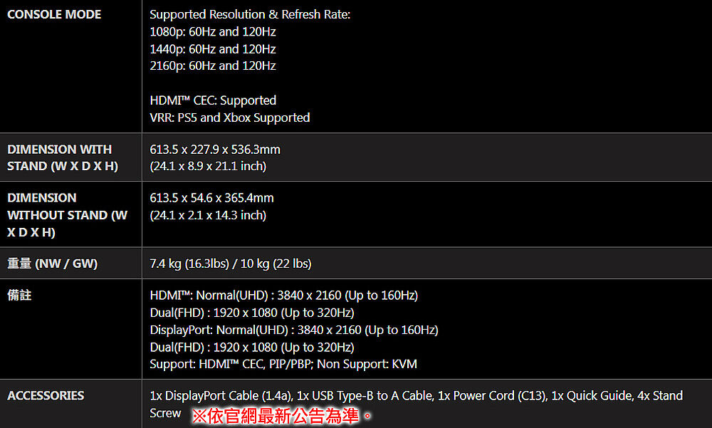 ※以上規格資料若有任何錯誤或原廠更動,以原廠所公佈資料為準。