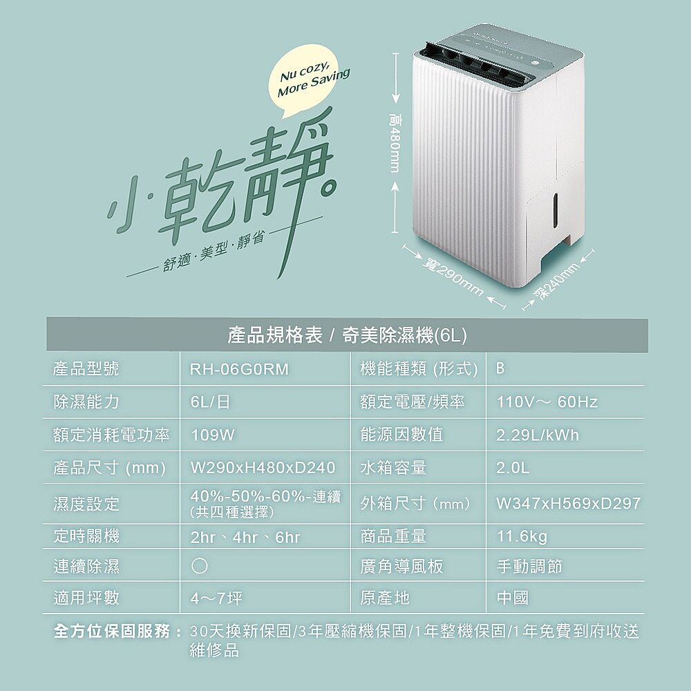 ◆除濕能力:6L/日