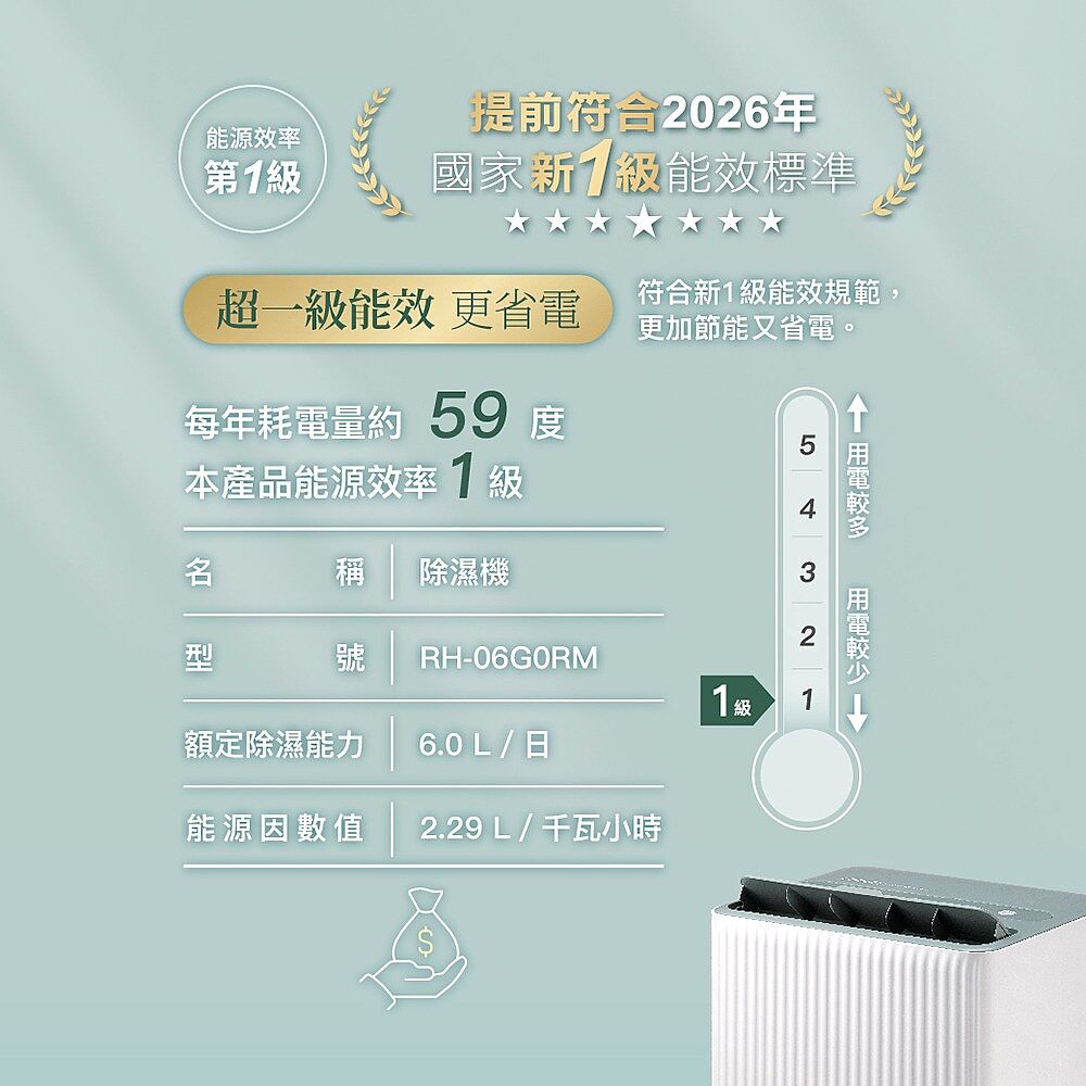 除濕能力:6公升/日