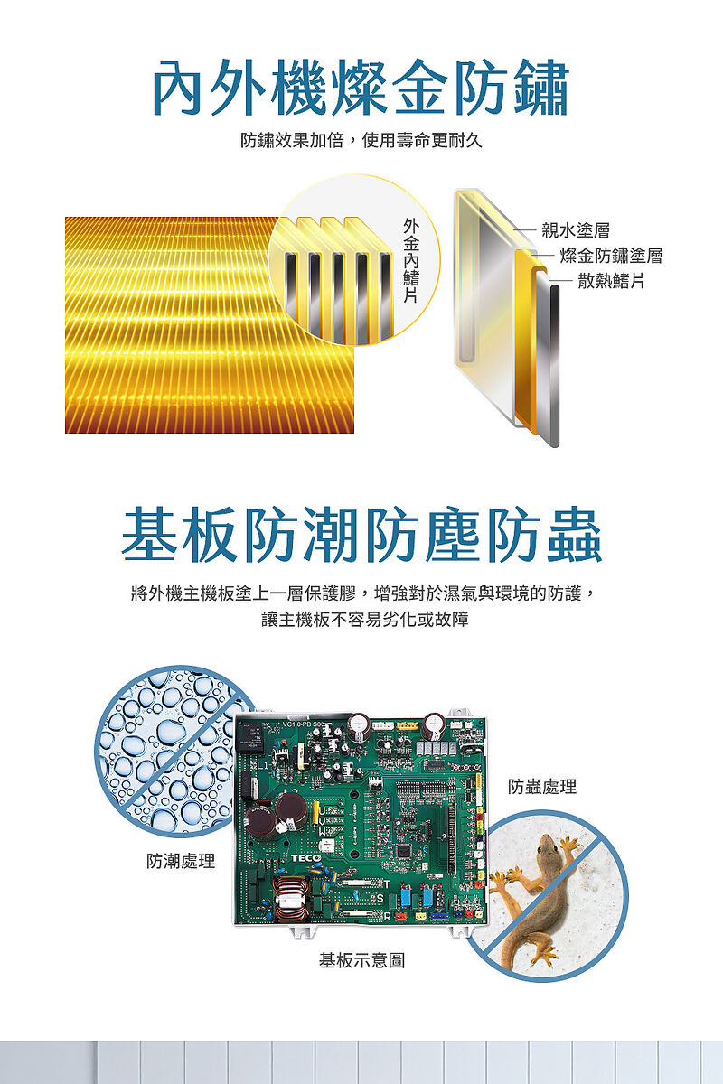特殊環境如硫磺,油酸,鹽害,沼氣,廢氣,不明氣體等因素產生腐蝕生鏽所引起故障及漏冷媒所導致者,保證期間本公司酌收材料工本費。
