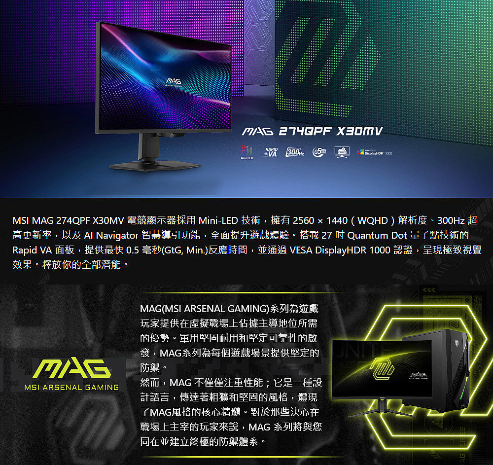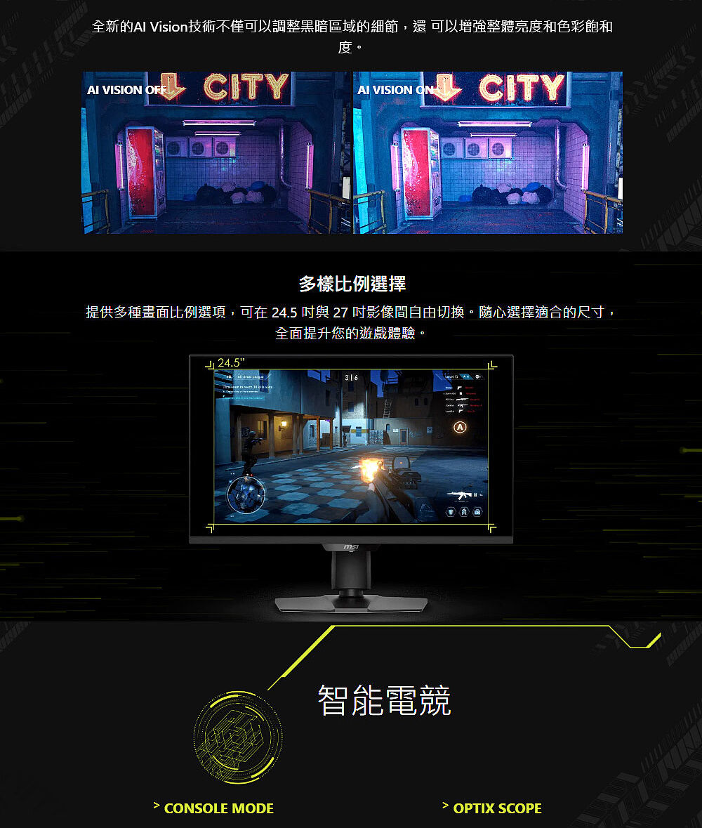0.5ms(GtG, Min.)反應時間–消除畫面撕裂與卡頓,確保順暢遊玩