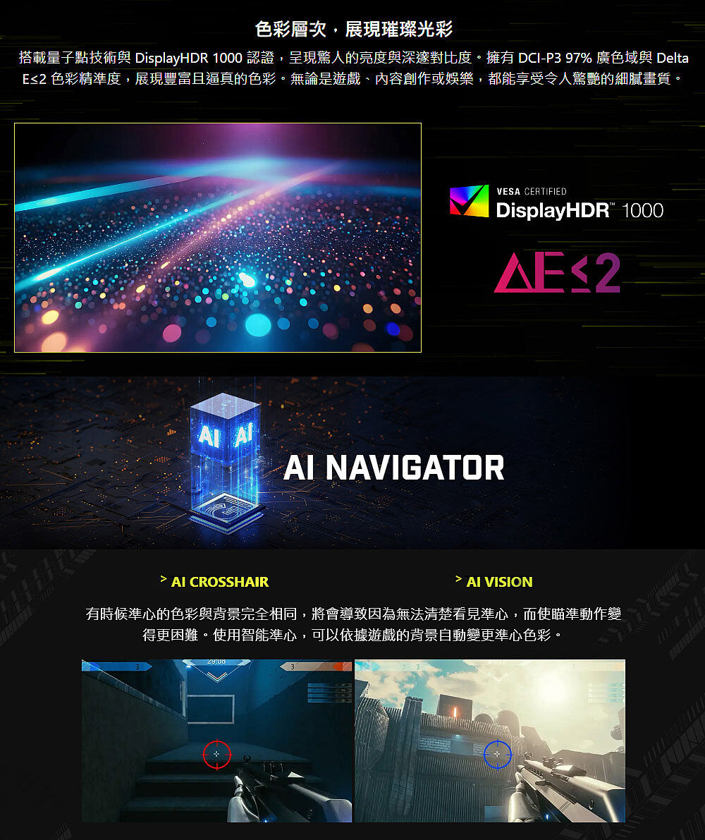 VESA DisplayHDR 1000–通過VESA認證,精準調整對比與陰影,呈現引人注目的細節畫面