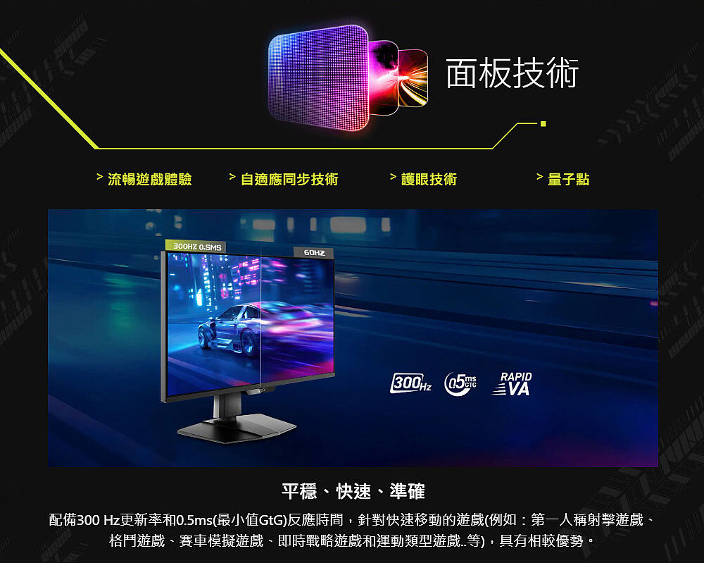 300Hz高更新率–提供流暢視覺體驗,提升遊戲中反應速度