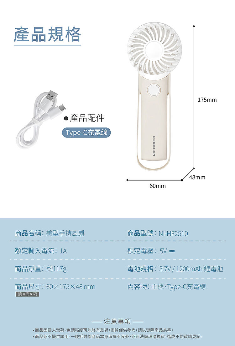 商品名稱:NICONICO美型手持風扇NI-HF2510