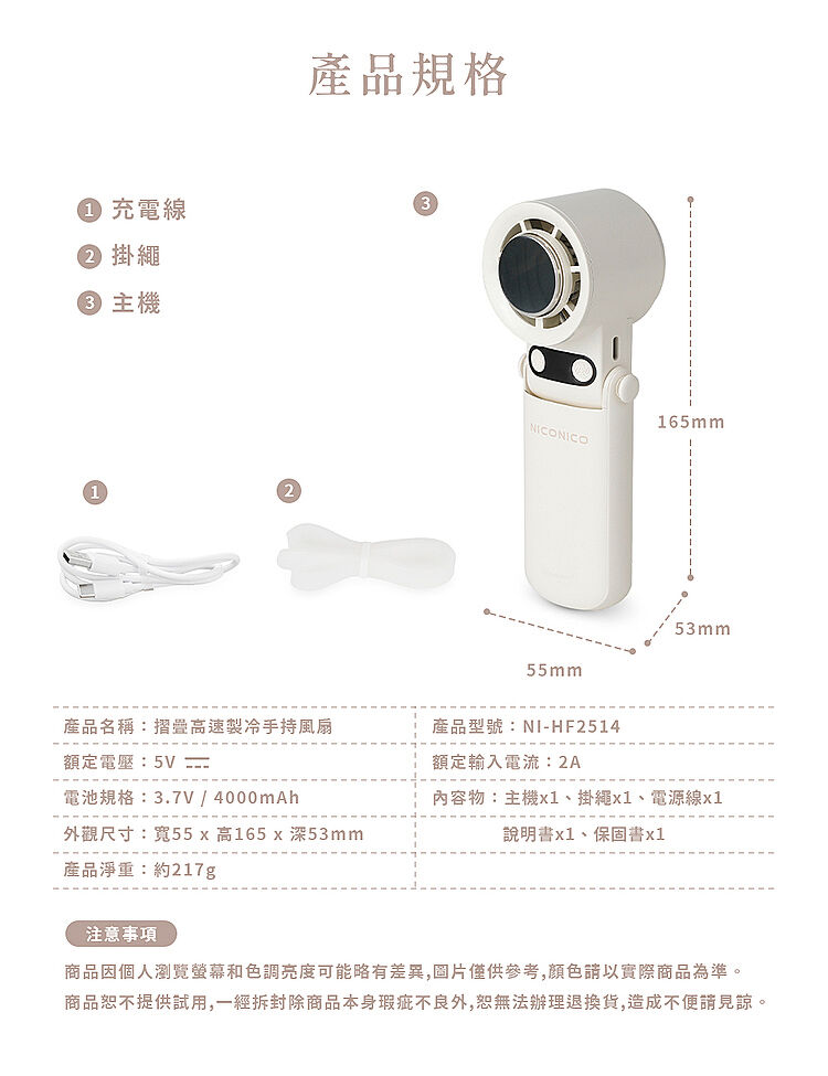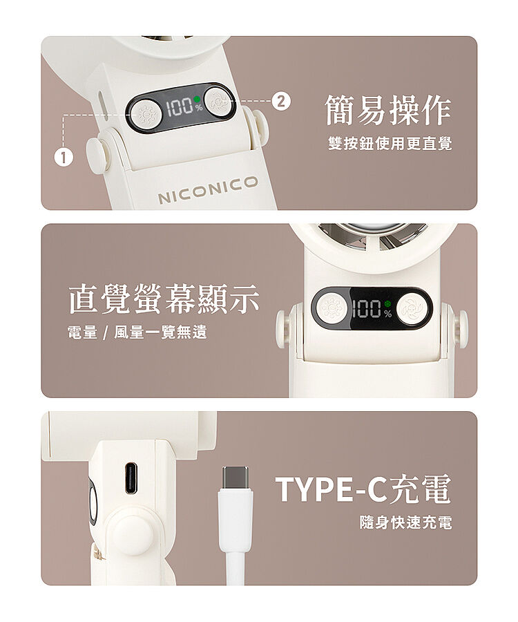 商品名稱:NICONICO摺疊高速製冷手持風扇NI-HF2514