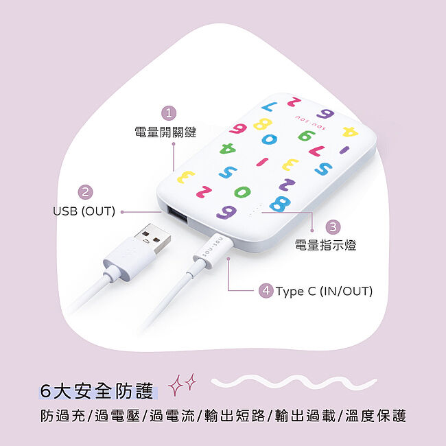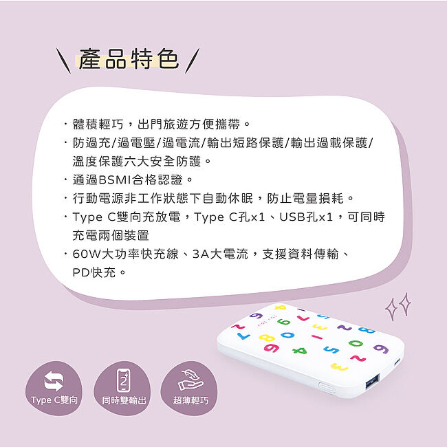 .輸出電壓/電流:Type C埠:5V⎓2.1A、USB埠:5V⎓2.1A