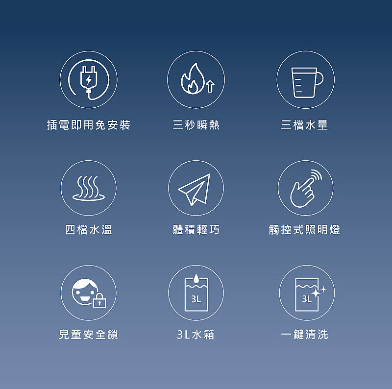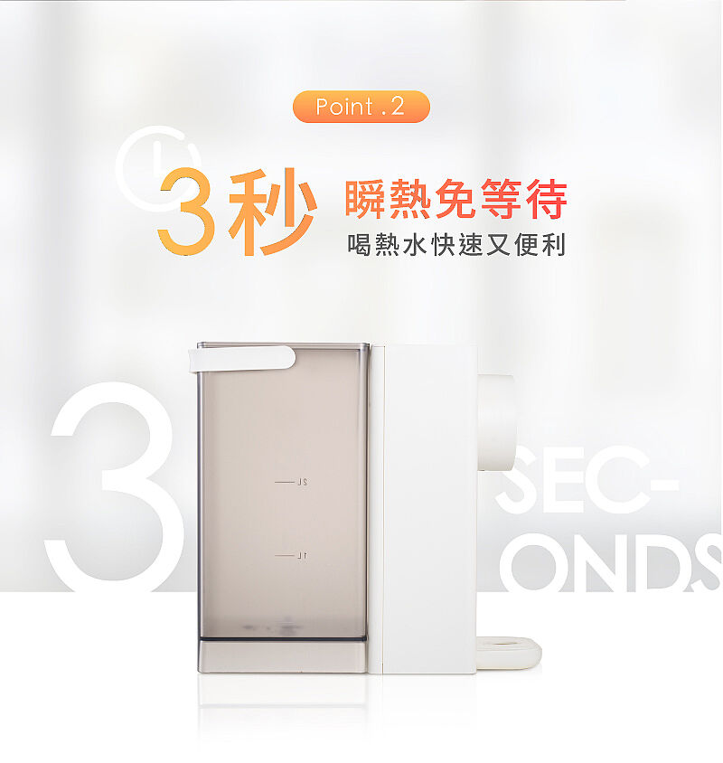3秒瞬熱,快速達到指定溫度,喝熱水快速又便利。
