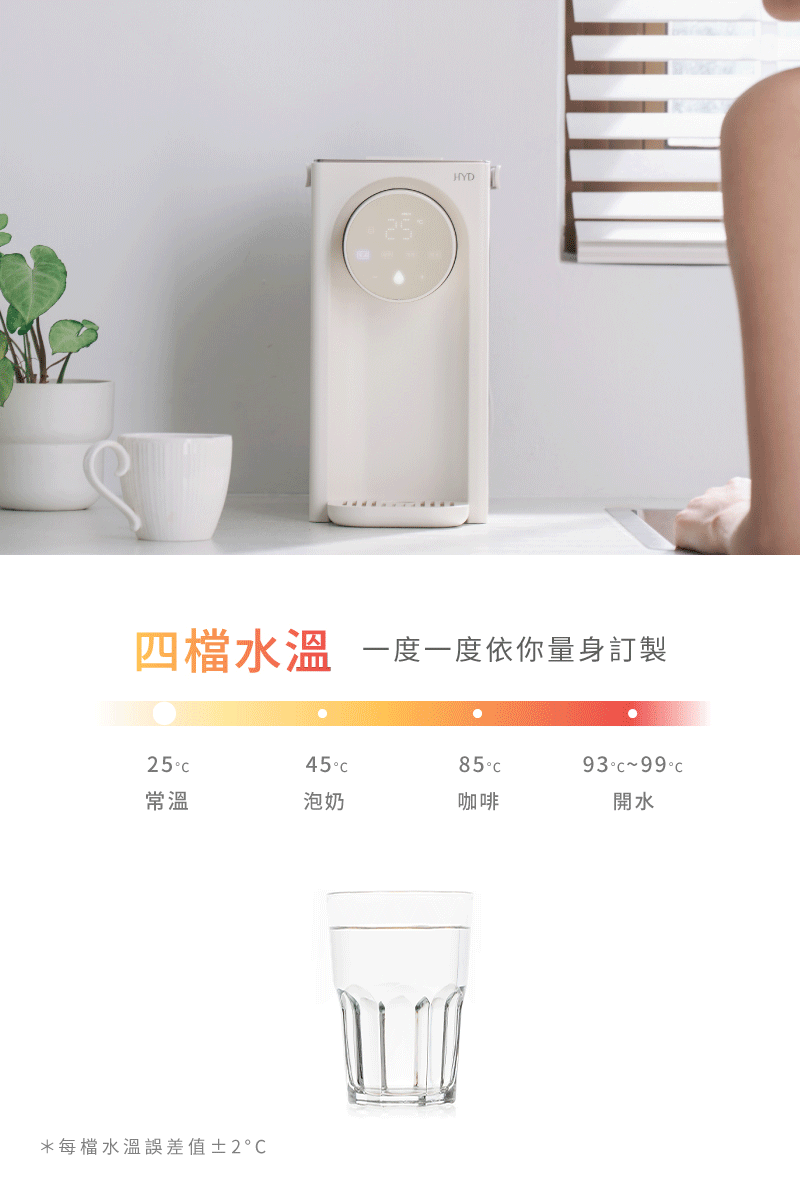 4檔水溫,【泡奶】【咖啡】溫度一度一度調。