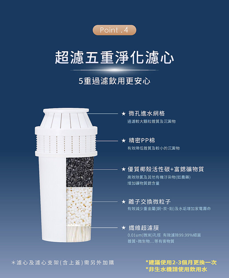 可加購五重淨化濾心,有效除氯、除菌達99%。