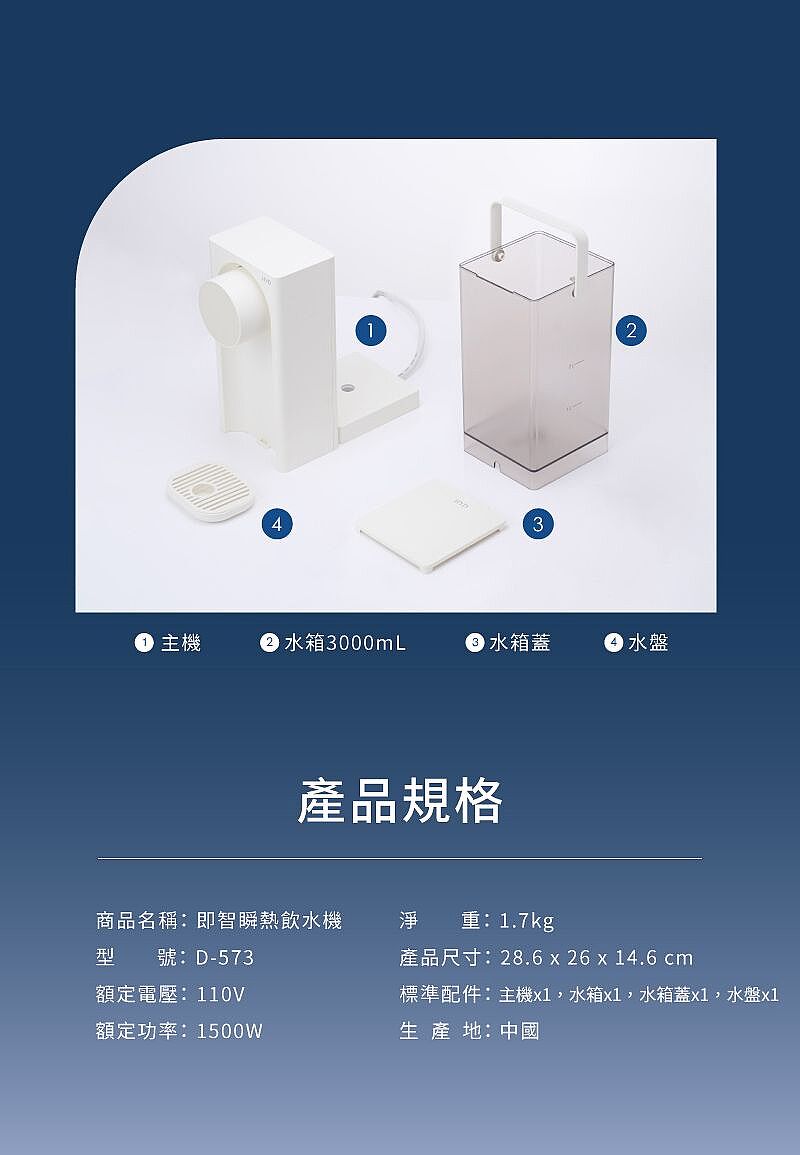 品 名 : 【HYD】小瞬心3L迷你定溫型智能瞬熱飲水機 D-573(智能觸控/一鍵清潔)免安裝
