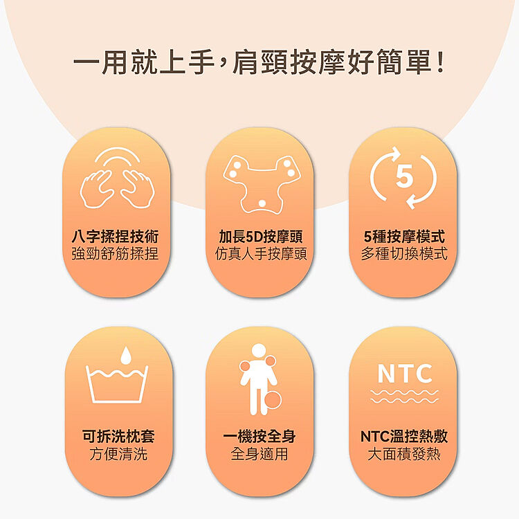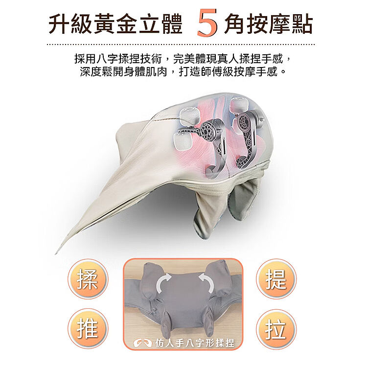 5D仿人手按摩頭,強力撥筋揉捏,直擊酸痛肩頸
