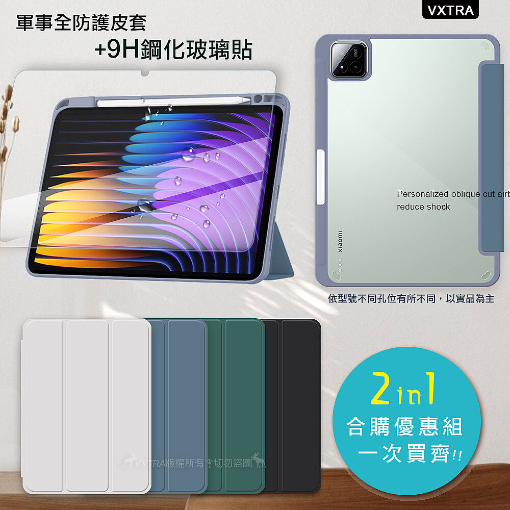 包裝內容物:VXTRA支架平板皮套+9H鋼化玻璃貼 x1