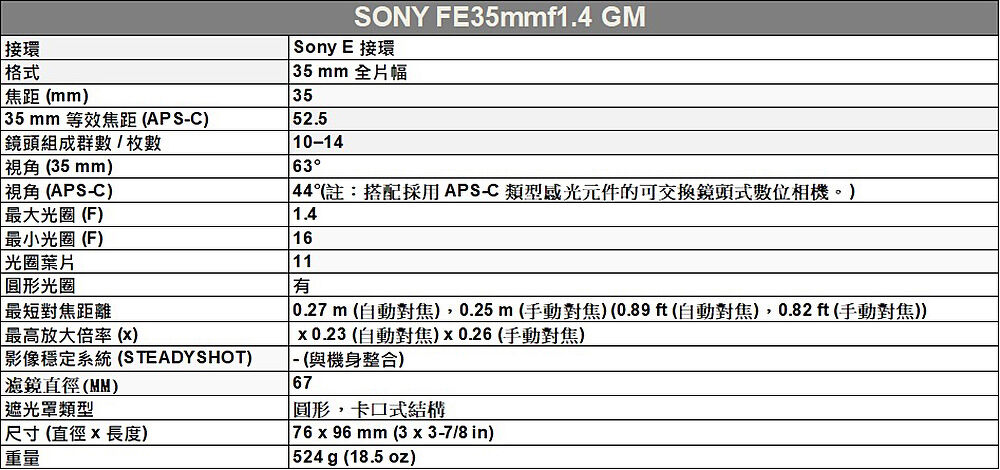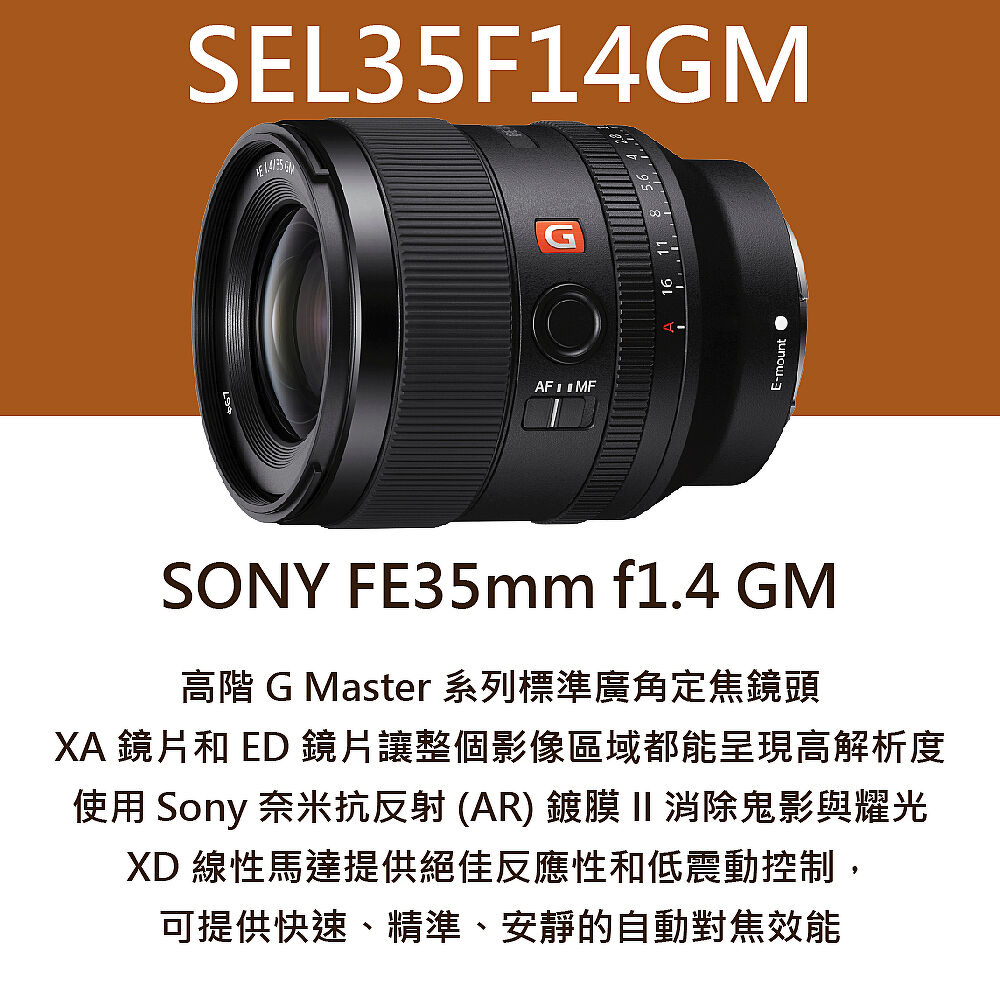 【SONY 索尼】FE35mmf1.4 GM定焦鏡*(平行輸入)