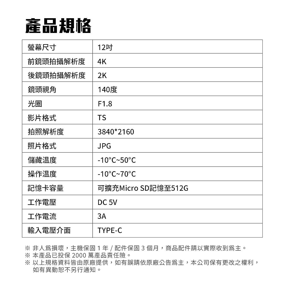 鏡頭:前鏡4K 後鏡2K 高解析廣角鏡頭