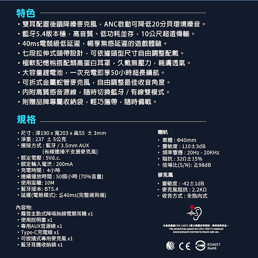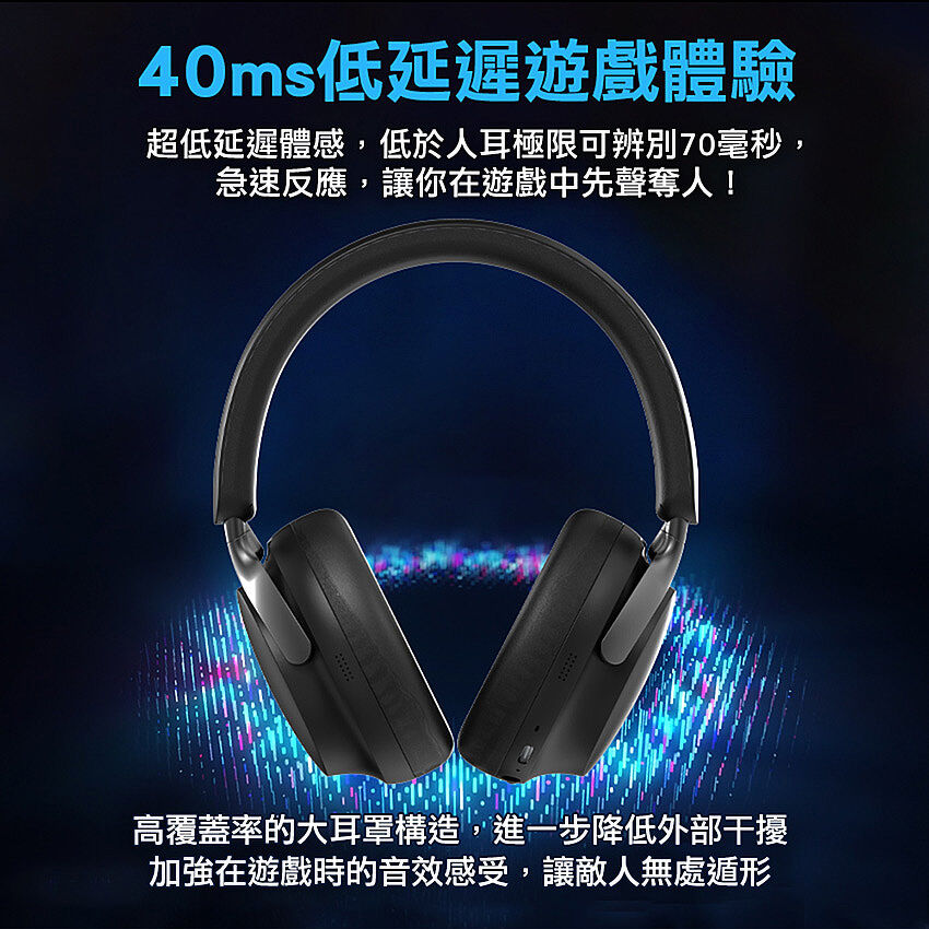 》雙耳配置後饋降噪麥克風,ANC啟動可降低20分貝環境噪音。