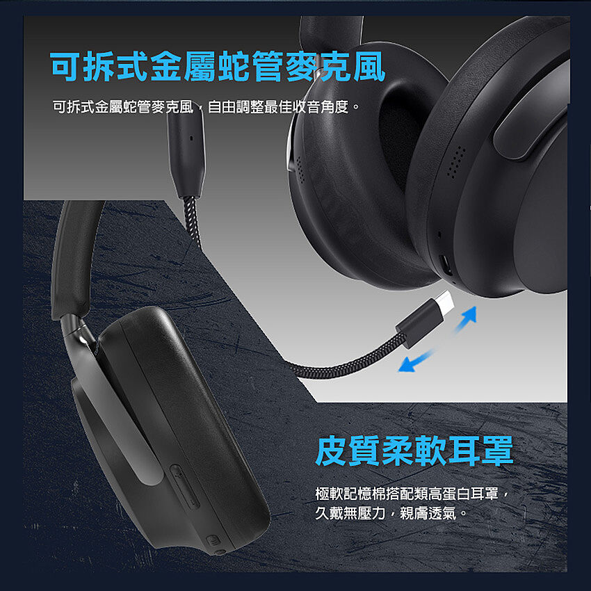 》極軟記憶棉搭配類高蛋白耳罩,久戴無壓力,親膚透氣。