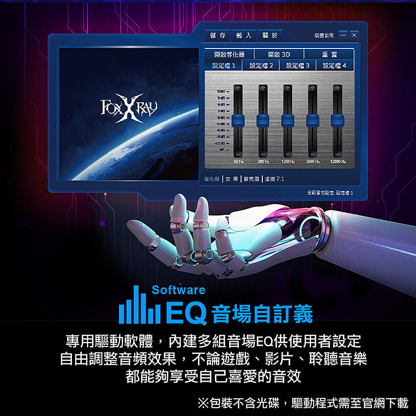 》虛擬7.1聲道音效晶片,專屬驅動可調整多種音場、EQ設定。