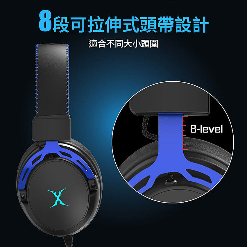 》8段可拉伸式頭帶設計,適合不同大小頭圍。