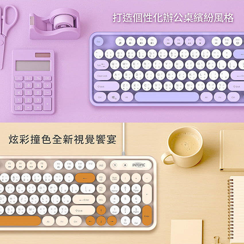 》復古打字機圓形懸浮鍵帽外觀設計。