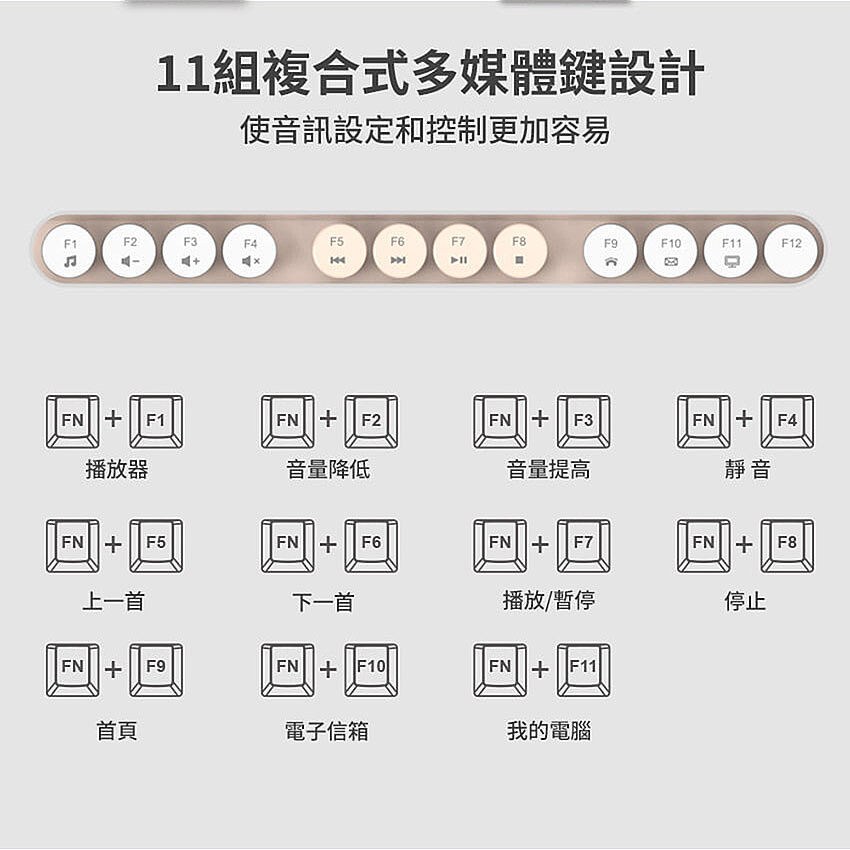 》11組複合式多媒體鍵設計。