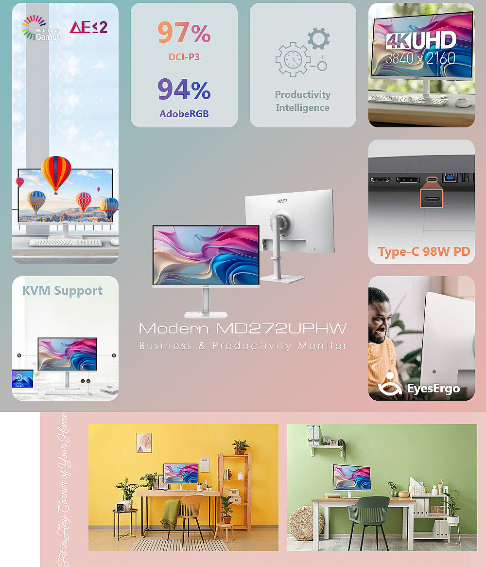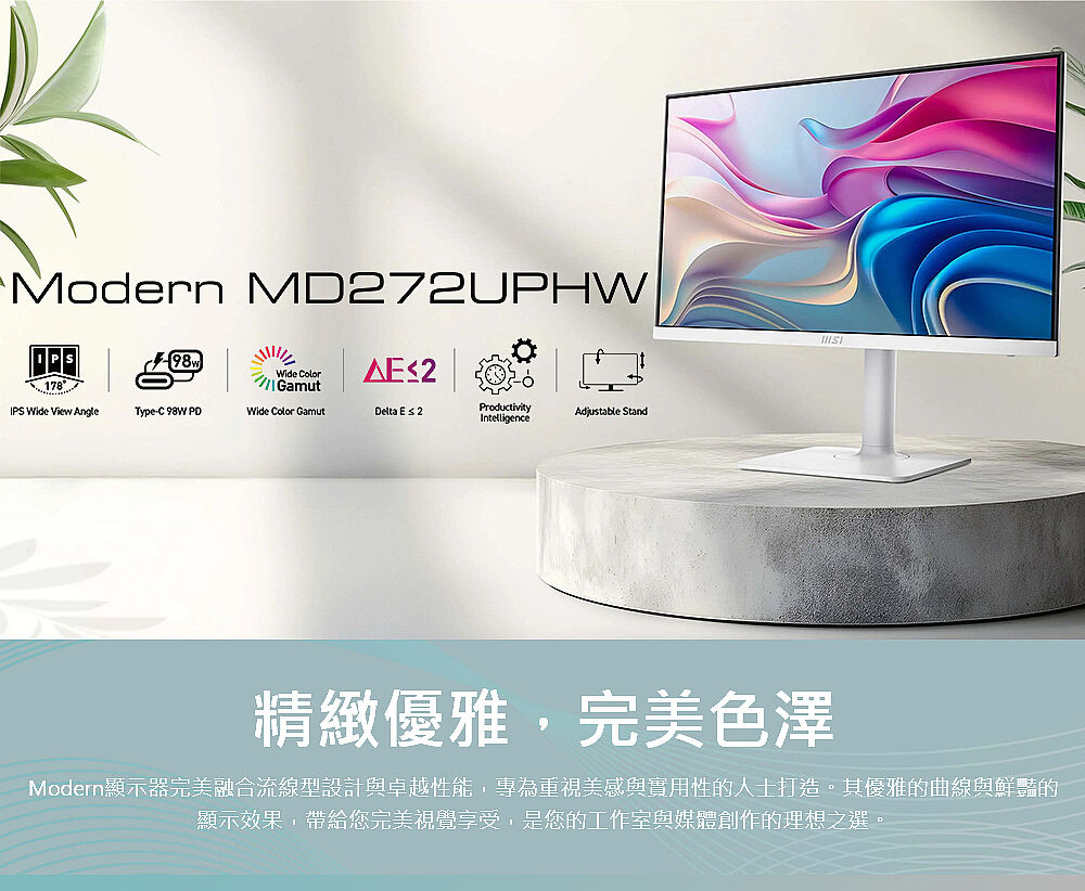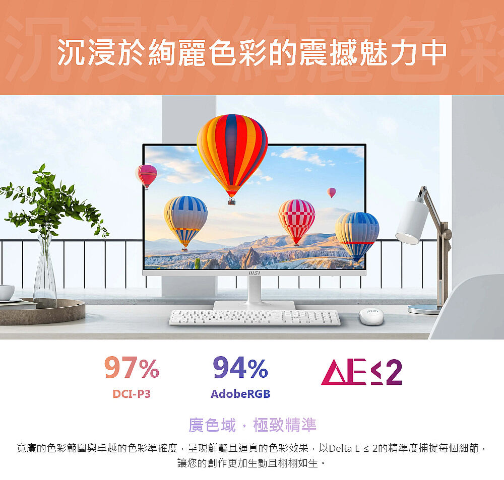 擁有 97% DCI-P3 和 94% Adobe RGB 色域,並經過工廠預校準,確保卓越色彩準確度