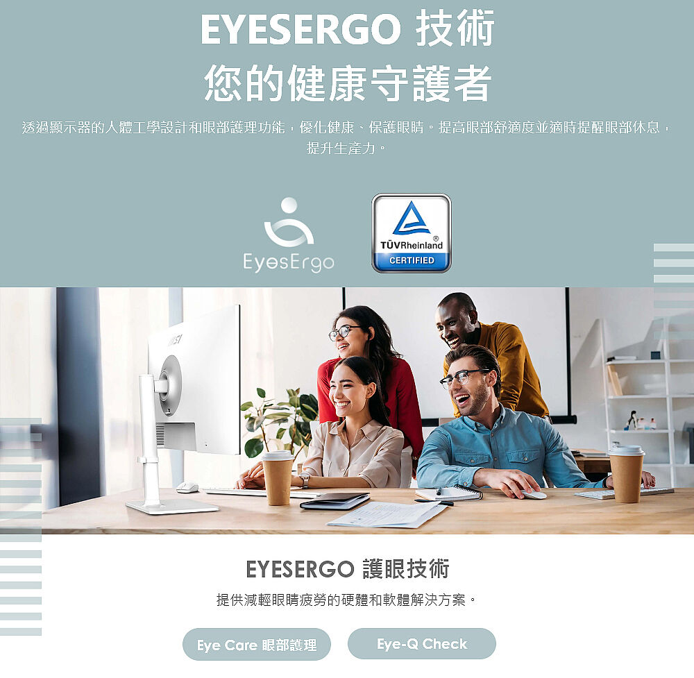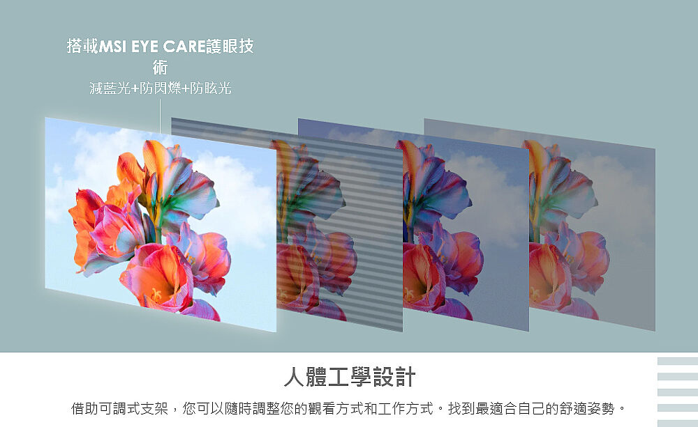MSI EyesErgo 與防閃爍技術,防止眼睛疲勞