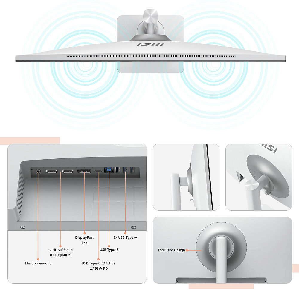 內建 USB Type-C 和 98W 供電功能,讓您輕鬆連接裝置並充電